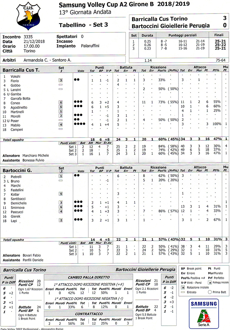 VOLLEY BARRICALLA CUS TORINO - BARTOCCINI GIOIELLERIE PERUGIA