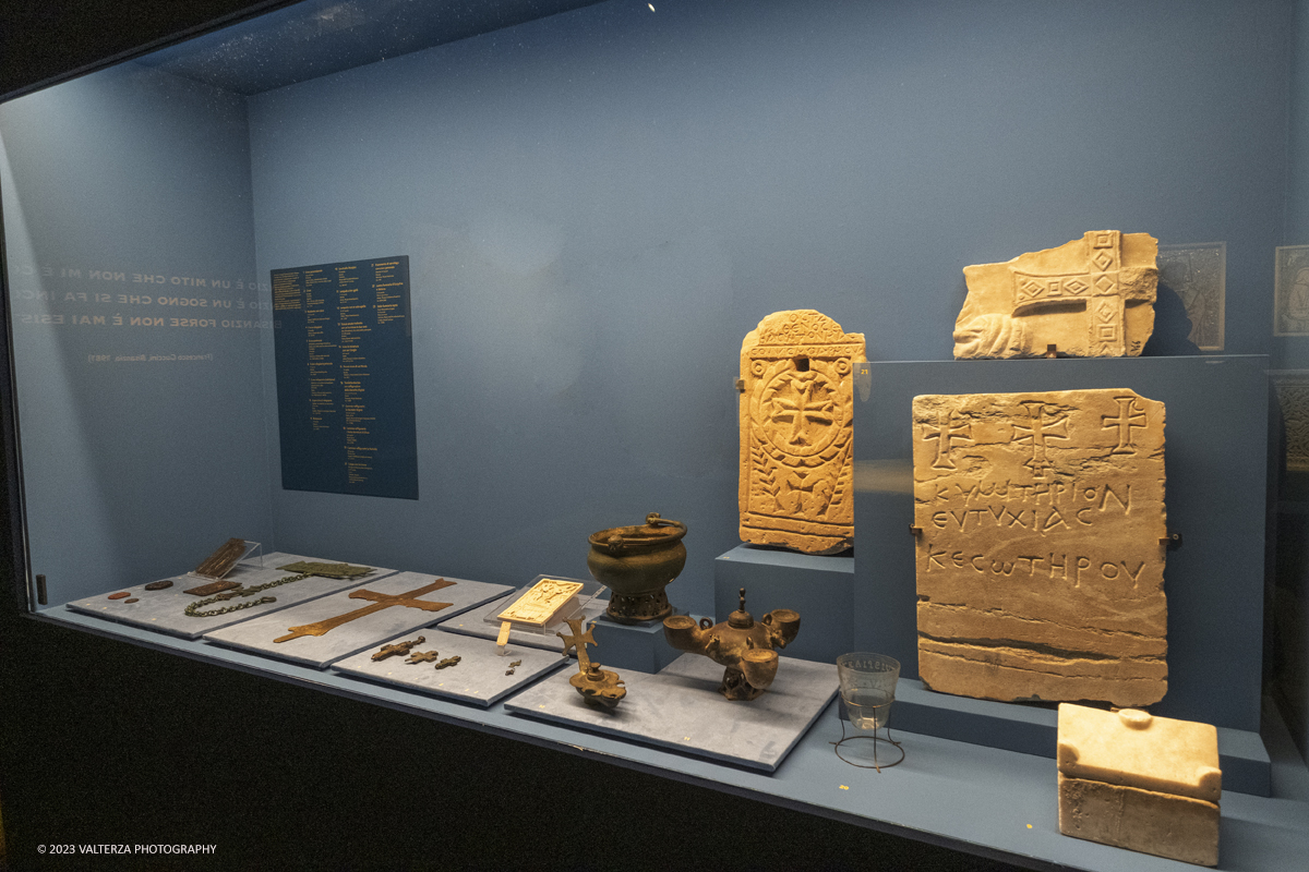 | DSF4565 | 09/05/2023. Torino. In esposizzione dal 10 Maggio al 28 Agosto 2023 Oltre 350 opere - sculture, mosaici, affreschi, vasellami, sigilli e monete, straordinari manufatti in ceramica, smalti, oggetti d’argento, preziose gemme e oreficerie, pregevoli elementi architettonici. Nella foto area tematica la Fede in mostra arredo liturgico |